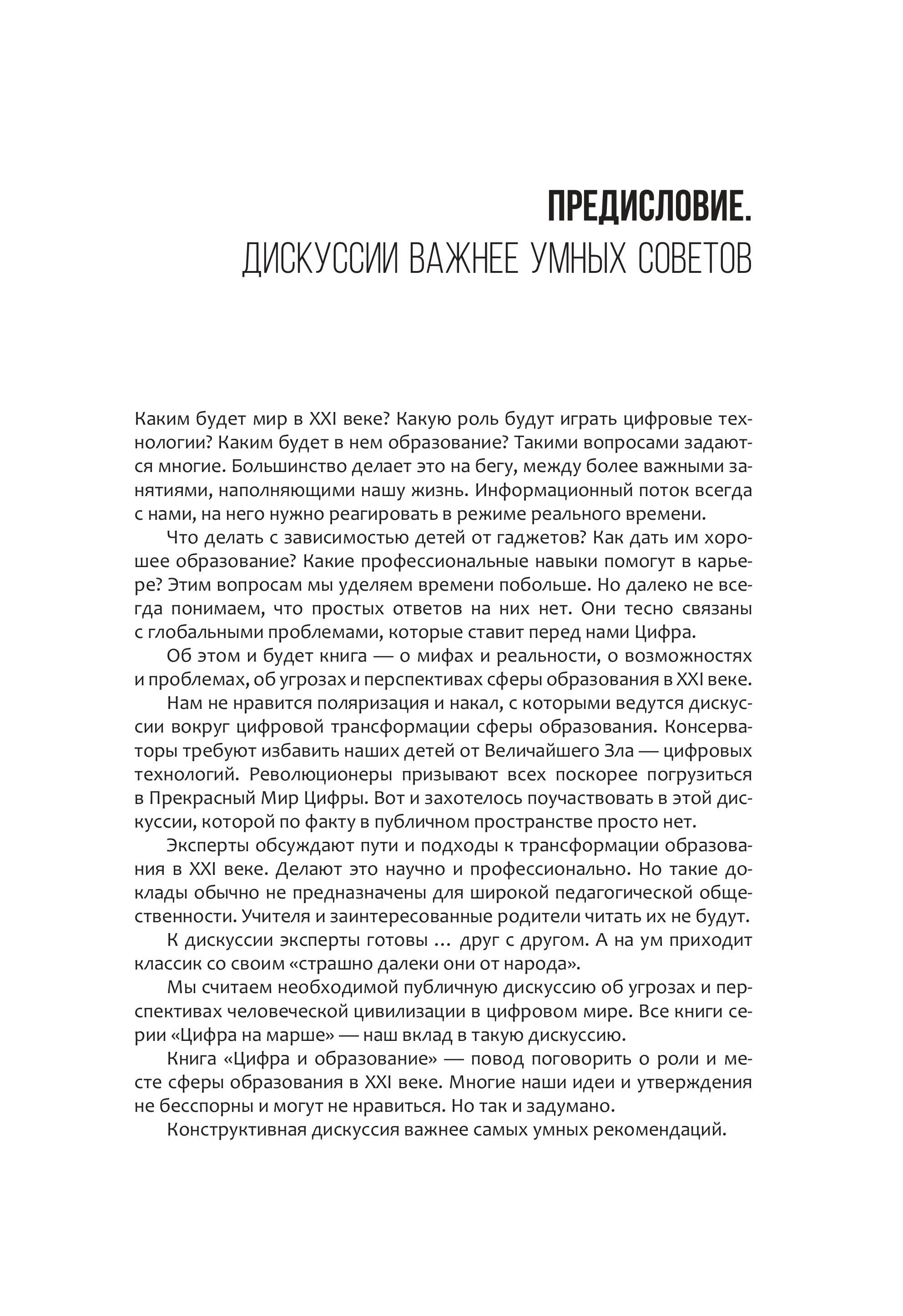 Каким будет цифровой мир, какие вызовы, угрозы и перспективы нас ждут? Какую роль во всем этом будет играть сфера образования? Как она менялась на протяжении веков и как будет меняться под влиянием цифровых технологий? Какие возможности дает Цифра школам, колледжам, университетам? Какими будут ученики, родители и учителя в XXI веке? Над этими вопросами вместе с авторами смогут размышлять заинтересованные родители, работники сферы образования, думающие работодатели