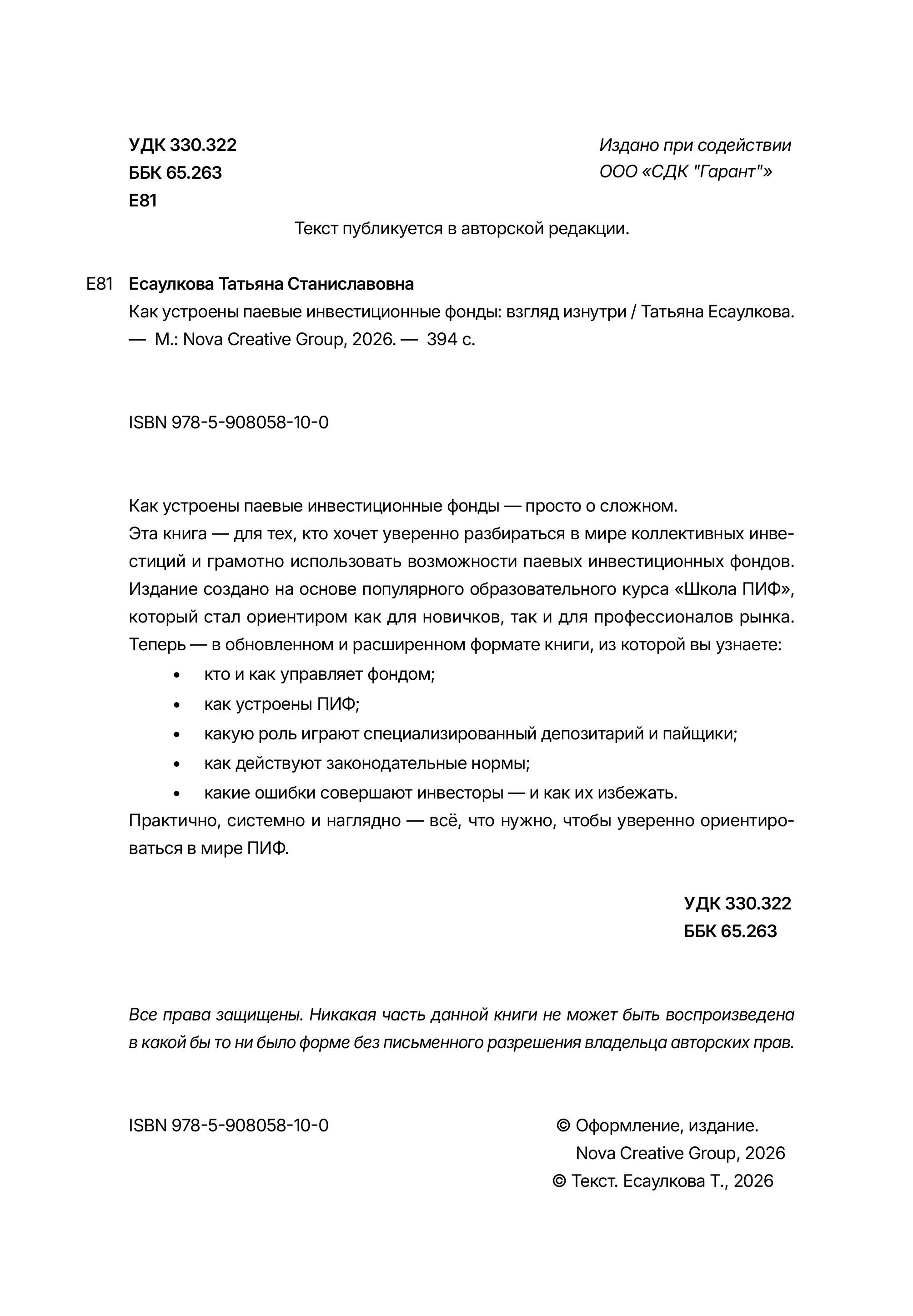 Эта книга — для тех, кто хочет уверенно разбираться в мире коллективных инвестиций и грамотно использовать возможности паевых инвестиционных фондов. Издание создано на основе популярного образовательного курса «Школа ПИФ», который стал ориентиром как для новичков, так и для профессионалов рынка. Теперь — в обновленном и расширенном формате книги, из которой вы узнаете: